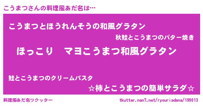 | 男性向けラノベタイトル風あだ名 | 『この素晴らしい世界にこうまつを!』 |