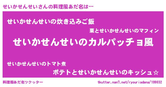 | ピコ太郎風あだ名 | 『セイ三郎』『セセ太郎』『ピセ次郎』 |