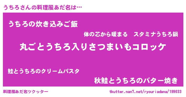 | ヘコむあだ名 | 『うちろ(笑)』『なまこ酢』 |
