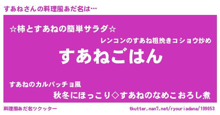 | 意味不明あだ名 | 『しいたけ科すあね属』『自称すあね』 |