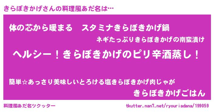 | 胡散臭い通販商品みたいなあだ名 | 『芸能人もオススメする冬虫夏草…その名も「きらぼきかげ」』 |