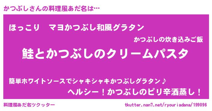 | ヒーロー風カッコイイあだ名 | 『天空の使者かつぶし』『仮面カツダー』 |