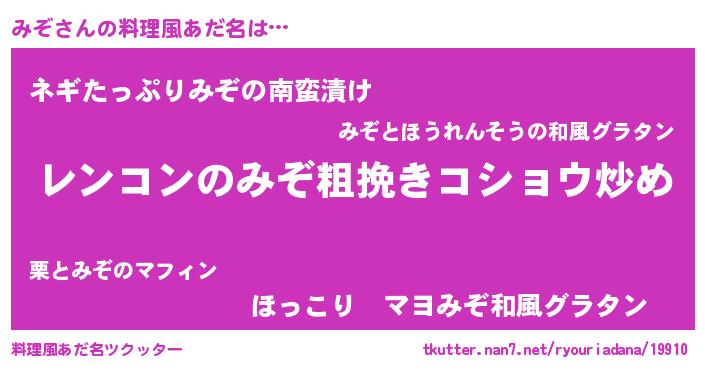 | ピコ太郎風あだ名 | 『ミコ六郎』『ミゾ二郎』『ピミ十郎』 |
