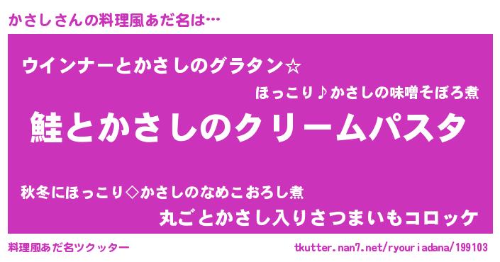 | 男性向けラノベタイトル風あだ名 | 『ノーゲーム・ノーカサシ』 |