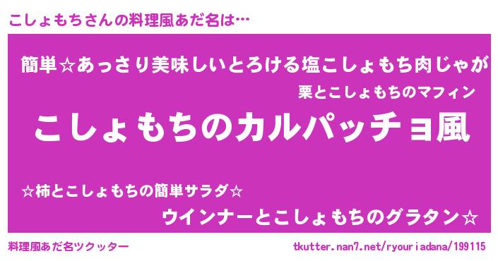 | 男性向けラノベタイトル風あだ名 | 『魔弾の王とこしょもち』 |