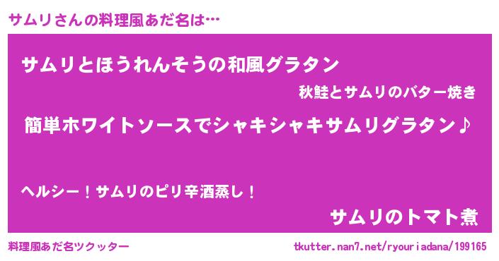| ヘコむあだ名 | 『サムっぺ』『サムリ(爆)』 |