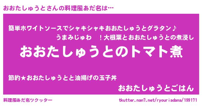 | 男性向けラノベタイトル風あだ名 | 『おまえをオタクにしてやるから、俺をおおたしゅうとにしてくれ! 』 |