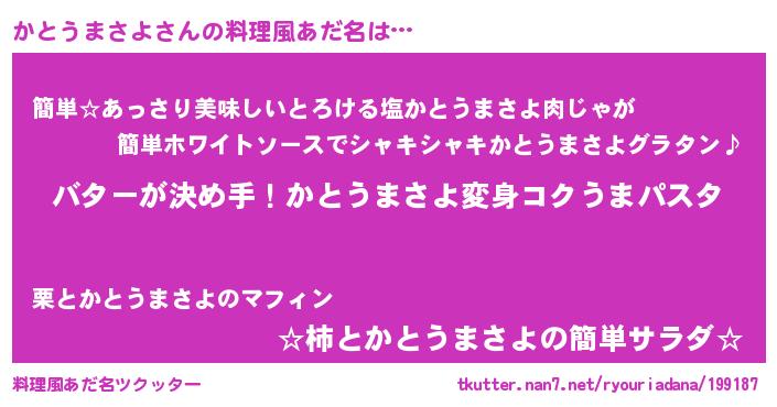 | 男性向けラノベタイトル風あだ名 | 『ノーゲーム・ノーカトウマサヨ』 |
