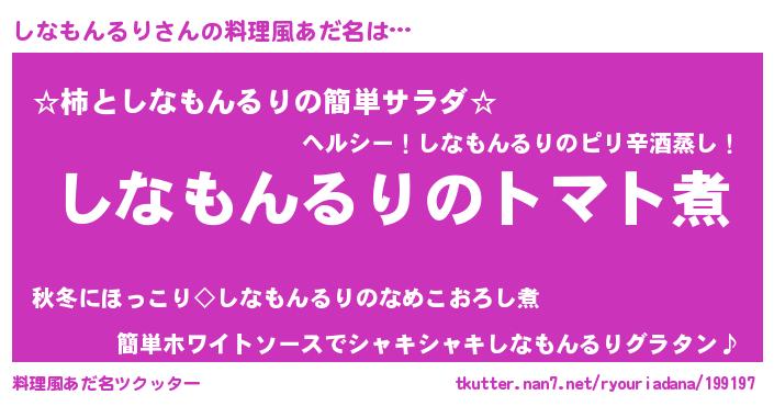| ヘコむあだ名 | 『しなぷりん』『しなもんるり(苦笑)』 |