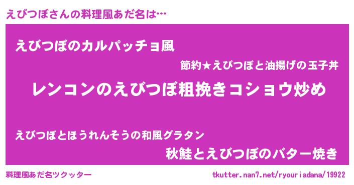 | 意味不明あだ名 | 『自称えびつぼ』『永久保存えびつぼ』 |