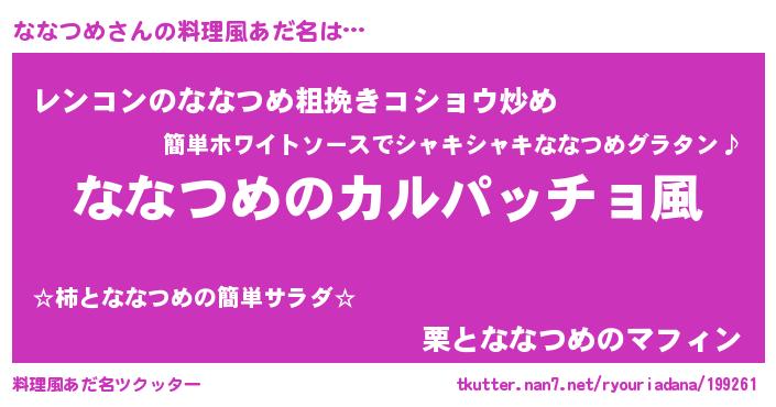 | ヘコむあだ名 | 『ななぷりん』『ななつめ(苦笑)』 |