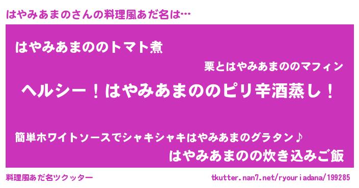 | 女子向けラノベタイトル風あだ名 | 『闇のはやみあまの』 |