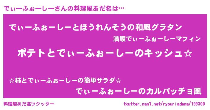 | 男性向けラノベタイトル風あだ名 | 『でぃーふぉーしーの嫁は女の子じゃないと思った?』 |
