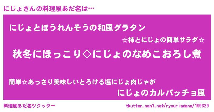 | ヘコむあだ名 | 『にじょ(笑)』『にじぷりん』 |