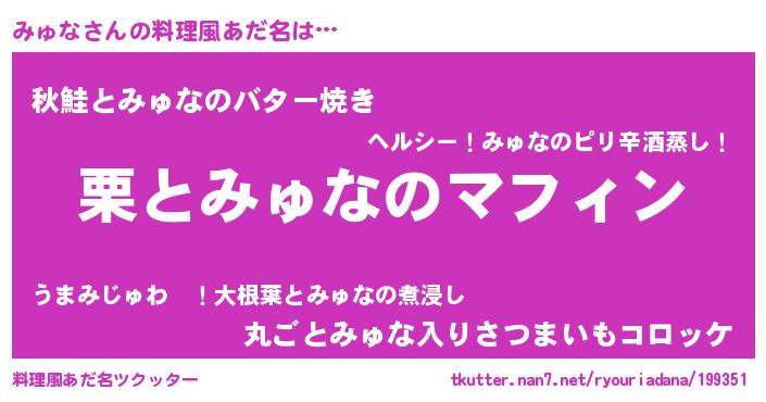 | 意味不明あだ名 | 『永久保存みゅな』『自称みゅな』 |