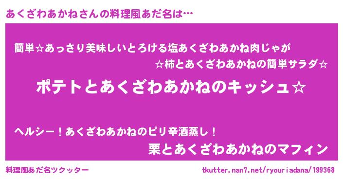 | ヘコむあだ名 | 『あくっ子』『あくざわあかね(笑)』 |