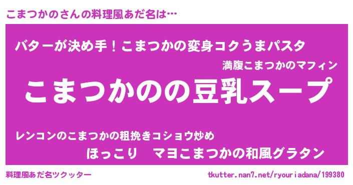 | ヒーロー風カッコイイあだ名 | 『暗黒騎士コマ』『天空の使者こまつかの』 |
