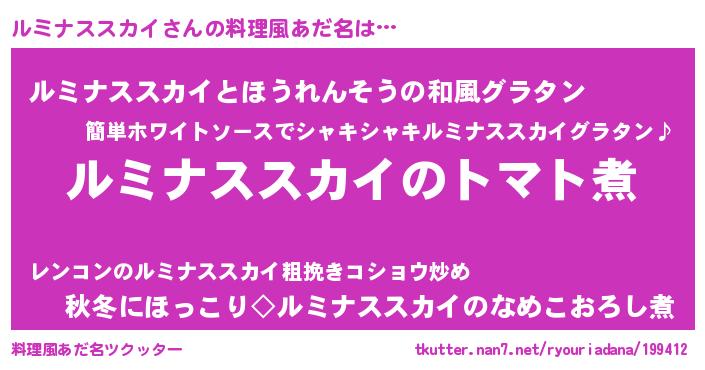 | 男性向けラノベタイトル風あだ名 | 『おまえをオタクにしてやるから、俺をルミナススカイにしてくれ! 』 |