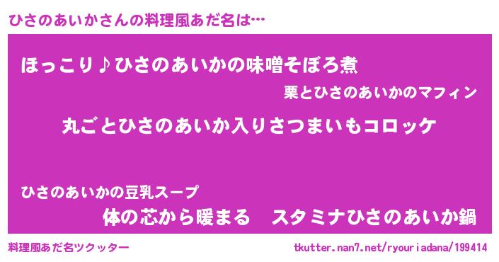 | 意味不明あだ名 | 『住所不定無職ひさのあいか(3歳)』 |