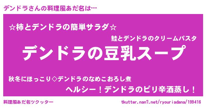 | 男性向けラノベタイトル風あだ名 | 『ダンジョンにデンドラを求めるのは間違っているだろうか』 |