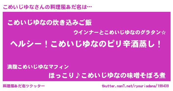 | 男性向けラノベタイトル風あだ名 | 『Re:こめいじゆなから始める異世界生活』 |