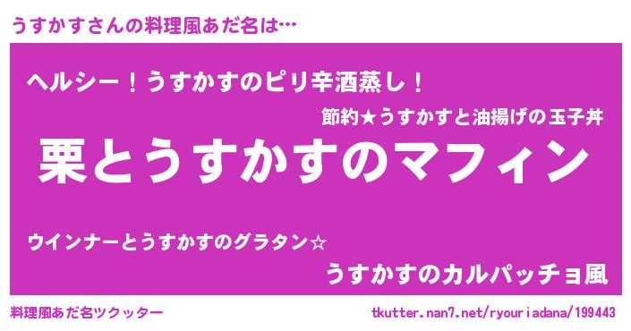 | 意味不明あだ名 | 『自称うすかす』『ペロリンうすかす』 |