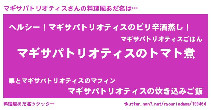 | 胡散臭い通販商品みたいなあだ名 | 『100人中100人が認めたマグネット磁石…その名も「マギサパトリオティス」』 |