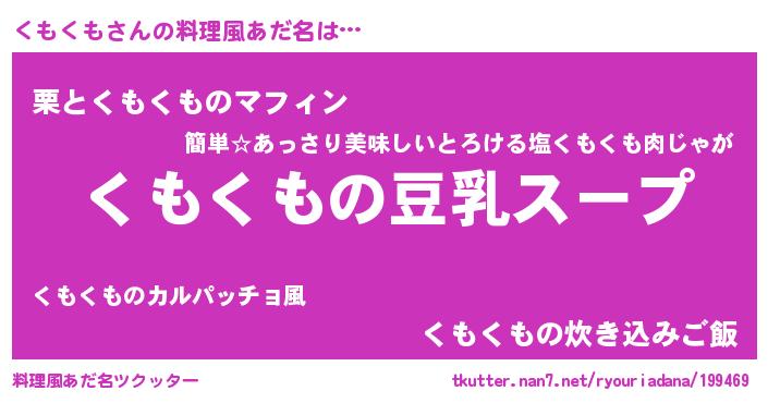 | 胡散臭い通販商品みたいなあだ名 | 『信頼と実績のサプリメント…その名も「くもくも」』 |