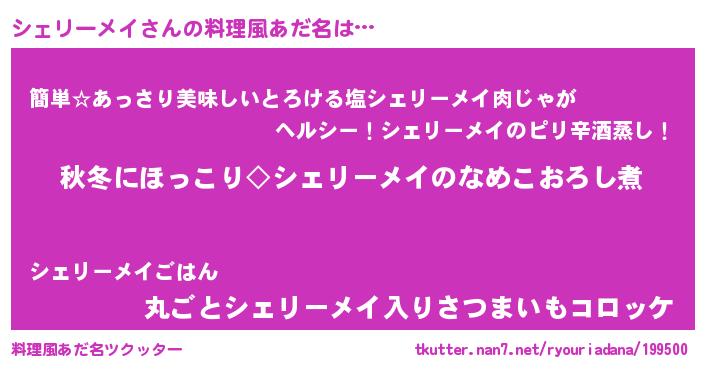 | 意味不明あだ名 | 『永久保存シェリーメイ』 |