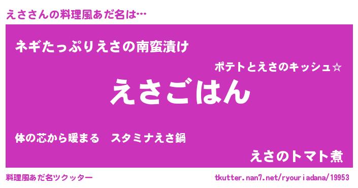 | ヒーロー風カッコイイあだ名 | 『スーパーエサ』『慈愛の使者えさ』 |