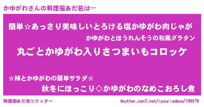 | ヘコむあだ名 | 『かゆがわ(遠い目)』『かゆもー』 |