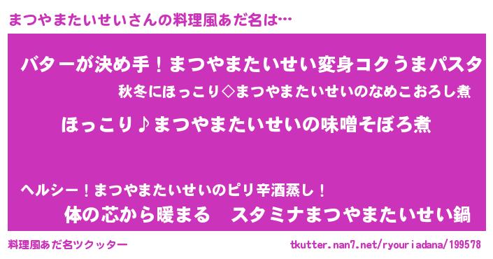 | 胡散臭い通販商品みたいなあだ名 | 『必ず成功する霊験あらたかなお札…その名も「まつやまたいせい」』 |