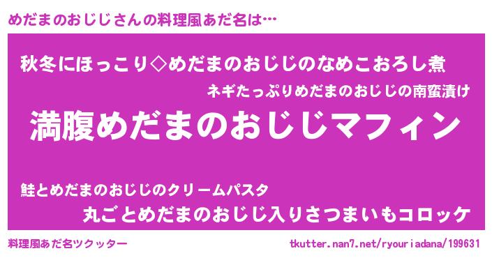 | ヘコむあだ名 | 『めだまのおじじ(苦笑)』『めだにゅー』 |