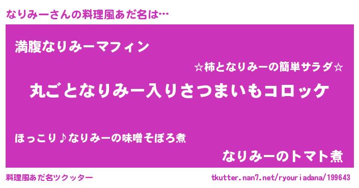 ヘコむあだ名 | 『なりみー(苦笑)』『なりふぇ~』 |