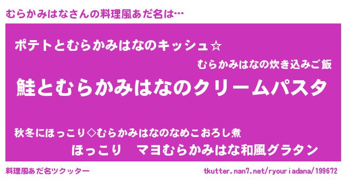 | ポケモン風あだ名 | 『ムックウザ』『ヒムラカミハナ』 |