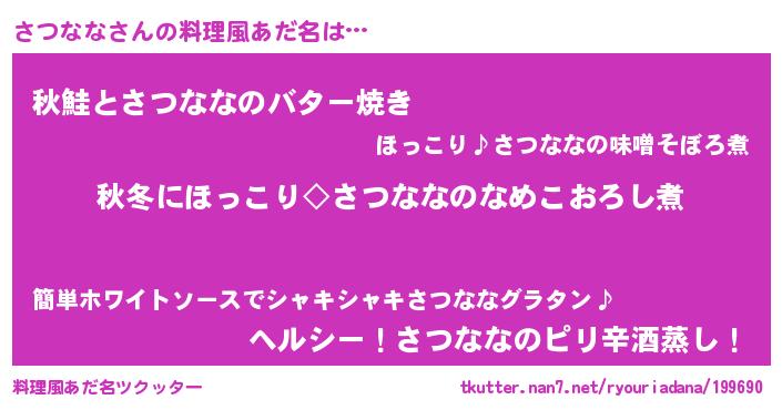 | ヘコむあだ名 | 『さつなな(爆)』『さつもー』『牛乳』 |