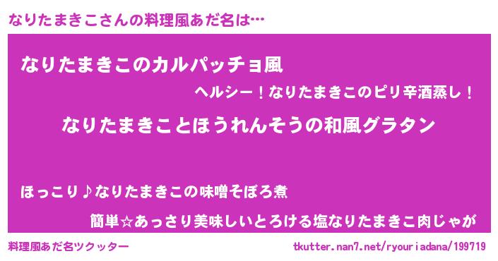 | ヒーロー風カッコイイあだ名 | 『仮面ナリダー』『ネオナリタマキコ』 |
