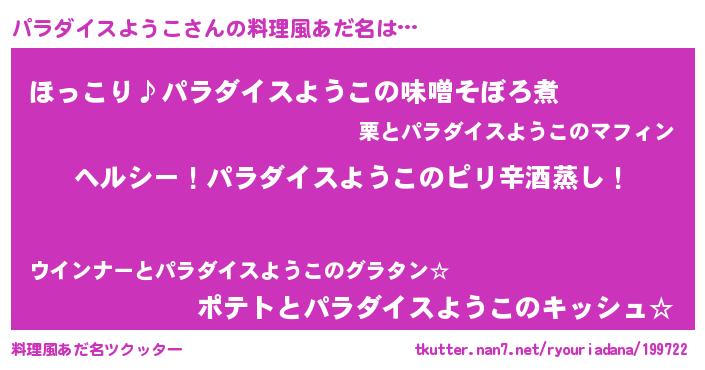 | 男性向けラノベタイトル風あだ名 | 『Re:パラダイスようこから始める異世界生活』 |