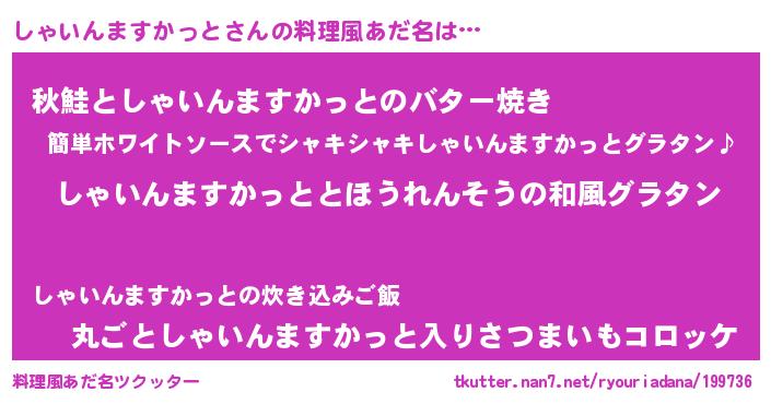 | 意味不明あだ名 | 『ニラ科しゃいんますかっと属』 |