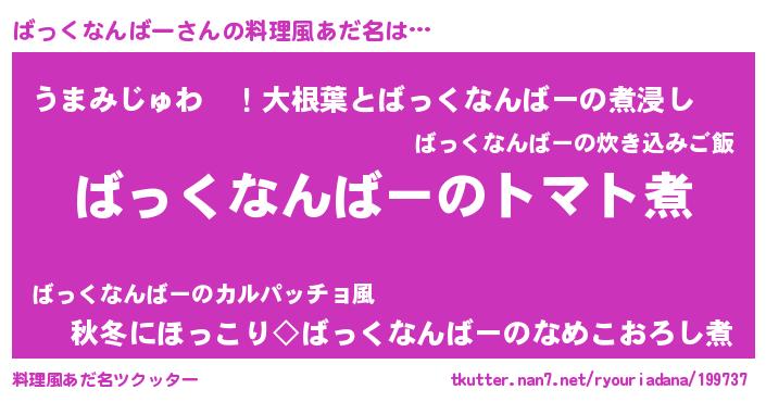 | 欧米人風あだ名 | 『ダニエルばっくなんばー』 |