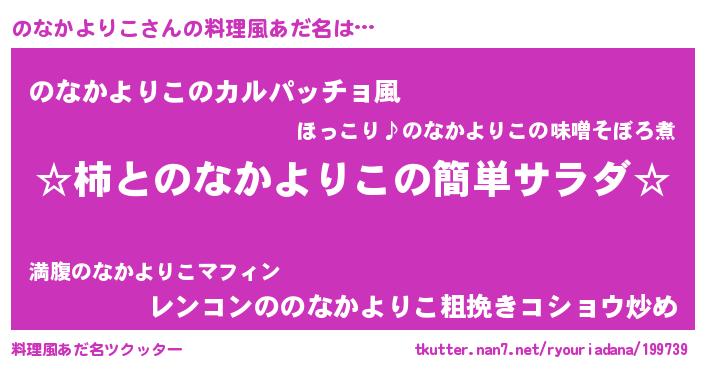 | 意味不明あだ名 | 『住所不定無職のなかよりこ(84歳)』 |