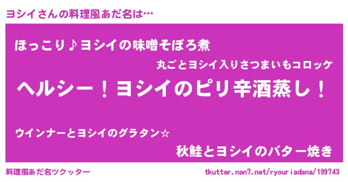 | ヘコむあだ名 | 『ヨシっふぃ~』『ヨシイ(笑)』 |