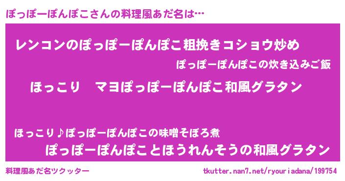| 男性向けラノベタイトル風あだ名 | 『この素晴らしい世界にぽっぽーぽんぽこを!』 |