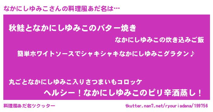| 男性向けラノベタイトル風あだ名 | 『なかにしゆみこの嫁は女の子じゃないと思った?』 |