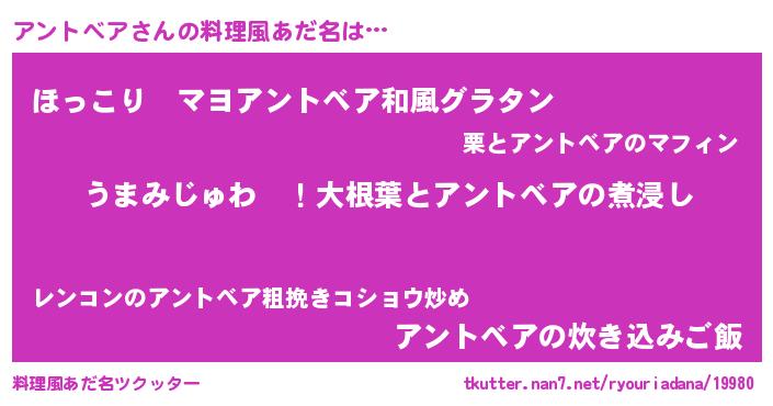 | 欧米人風あだ名 | 『アントベアクリステル』 |