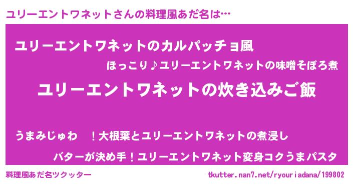 | 意味不明あだ名 | 『住所不定無職ユリーエントワネット(85歳)』 |