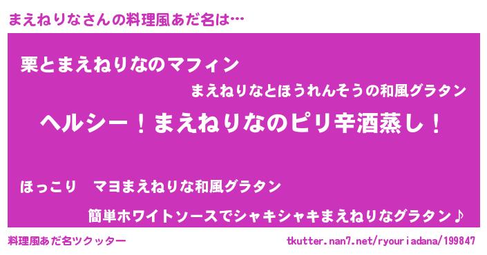 | 男性向けラノベタイトル風あだ名 | 『Re:まえねりなから始める異世界生活』 |
