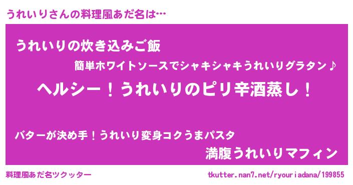 | 男性向けラノベタイトル風あだ名 | 『Re:うれいりから始める異世界生活』 |