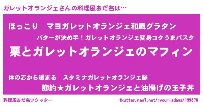 | 欧米人風あだ名 | 『アンジェラ・ガレットオランジェ』 |