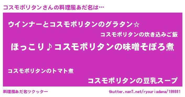 | 胡散臭い通販商品みたいなあだ名 | 『必ず成功する水晶球…その名も「コスモポリタン」』 |